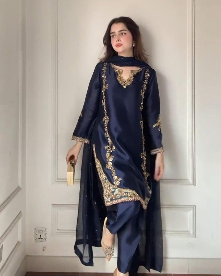 🔻This is a premium quality Tussle silk 3-piece stitched ensemble with silk duppatta